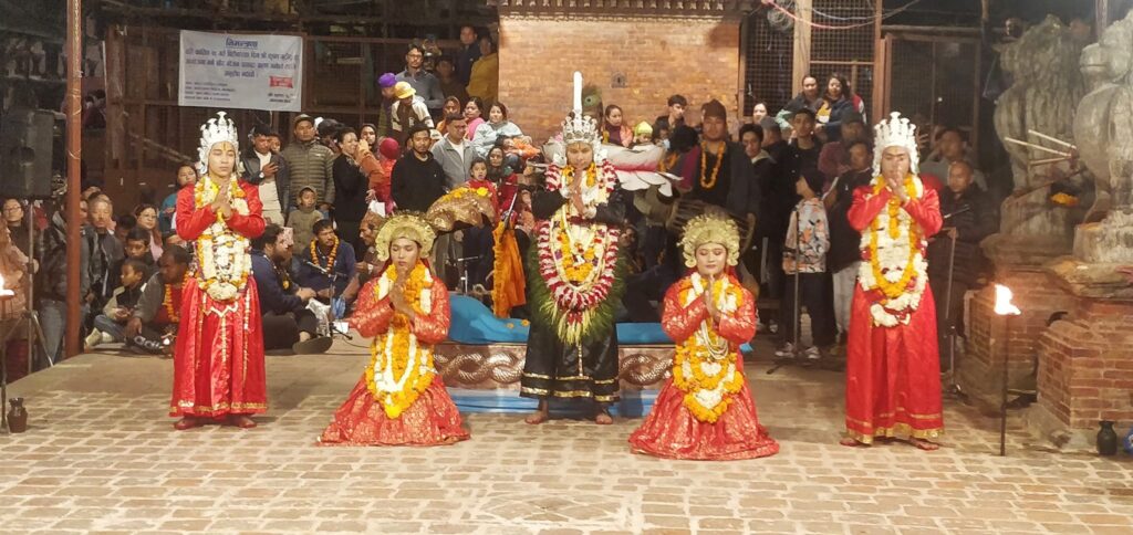 Kartik Nach is mythical drama and dance program performed in the evening in Patan Durbar Square. This dance is the one of the important tantric mask dance of god & demon. The main legendary story of Pralad and Narsingha Avatar also performed during this period.